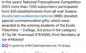 στον Πανελλήνιο Διαγωνισμό Γαλλοφωνίας που διοργανώνει κάθε χρόνο η